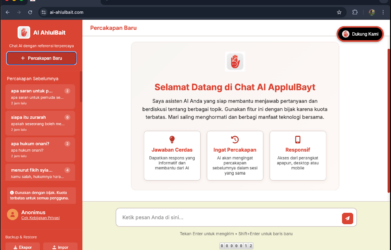 Kami sedang mengembangkan aplikasi web Chat AI Ahlul Bait, sebuah platform kecerdasan buatan yang dirancang untuk membantu Anda menyampaikan berbagai pertanyaan dan memperoleh jawaban yang cerdas, terarah, serta bersumber dari referensi-referensi terpercaya dalam tradisi Ahlul Bait. Yang membedakan Chat AI Ahlul Bait dari platform AI...